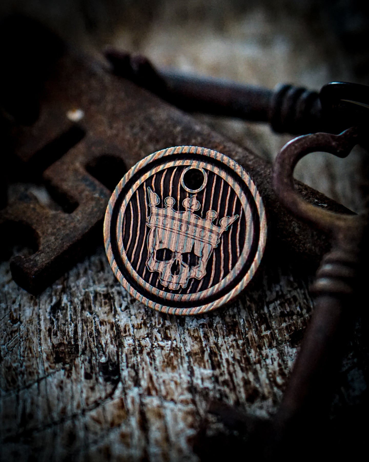 This is a one-of-a-kind Mokume Gane pendant. Brass, copper, and cupronickel layered and forged into a rugged pattern that doesn’t repeat. Deep-engraved with a crowned skull and acid etched to expose the metal grain. Simple, strong, unapologetic. Made to be worn by those who embrace the fight.