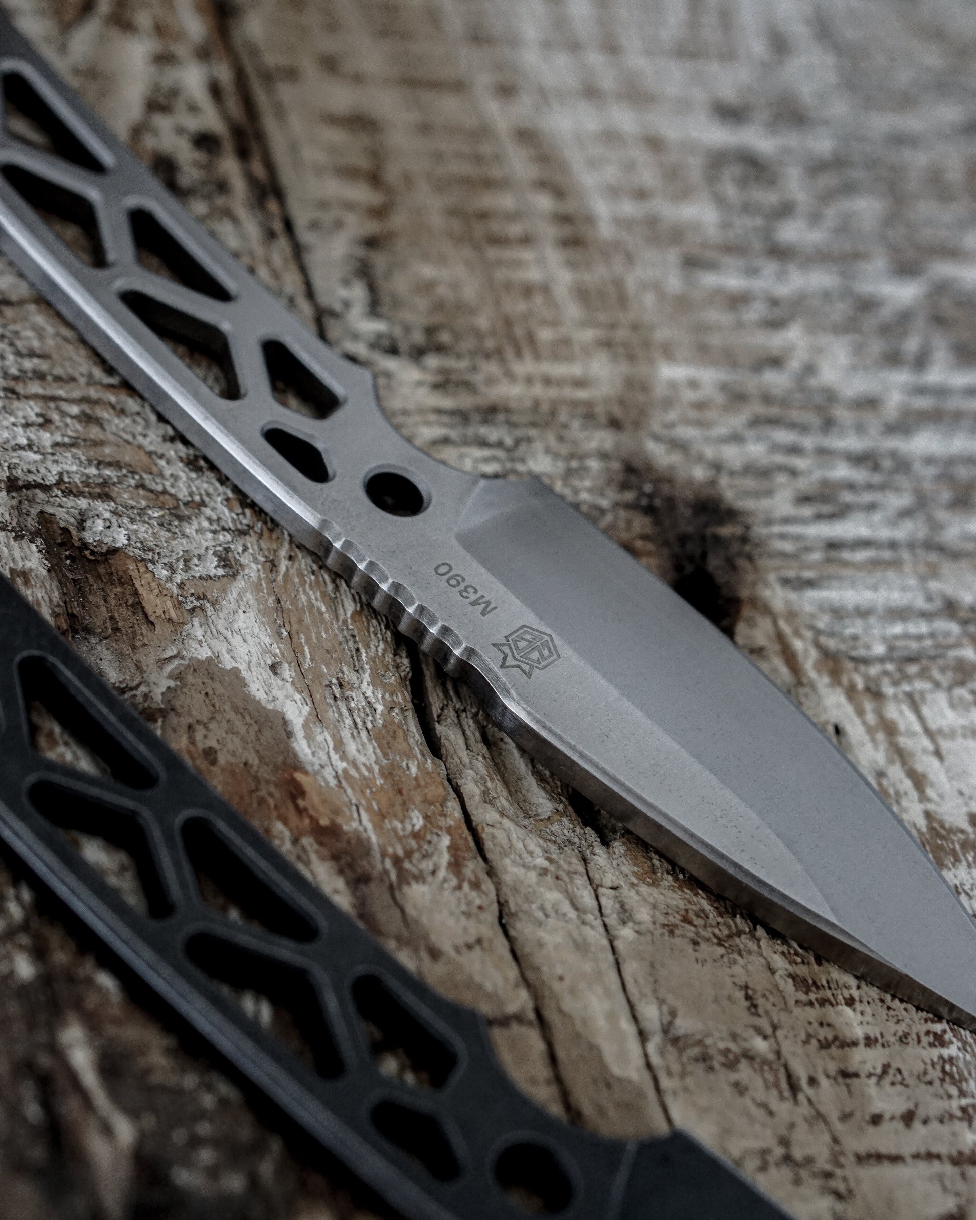 Made with premium Böhler M390 stainless steel, which is known for its incredible hardness and wear resistance and designed with a sturdy full tang skeletonized handle.