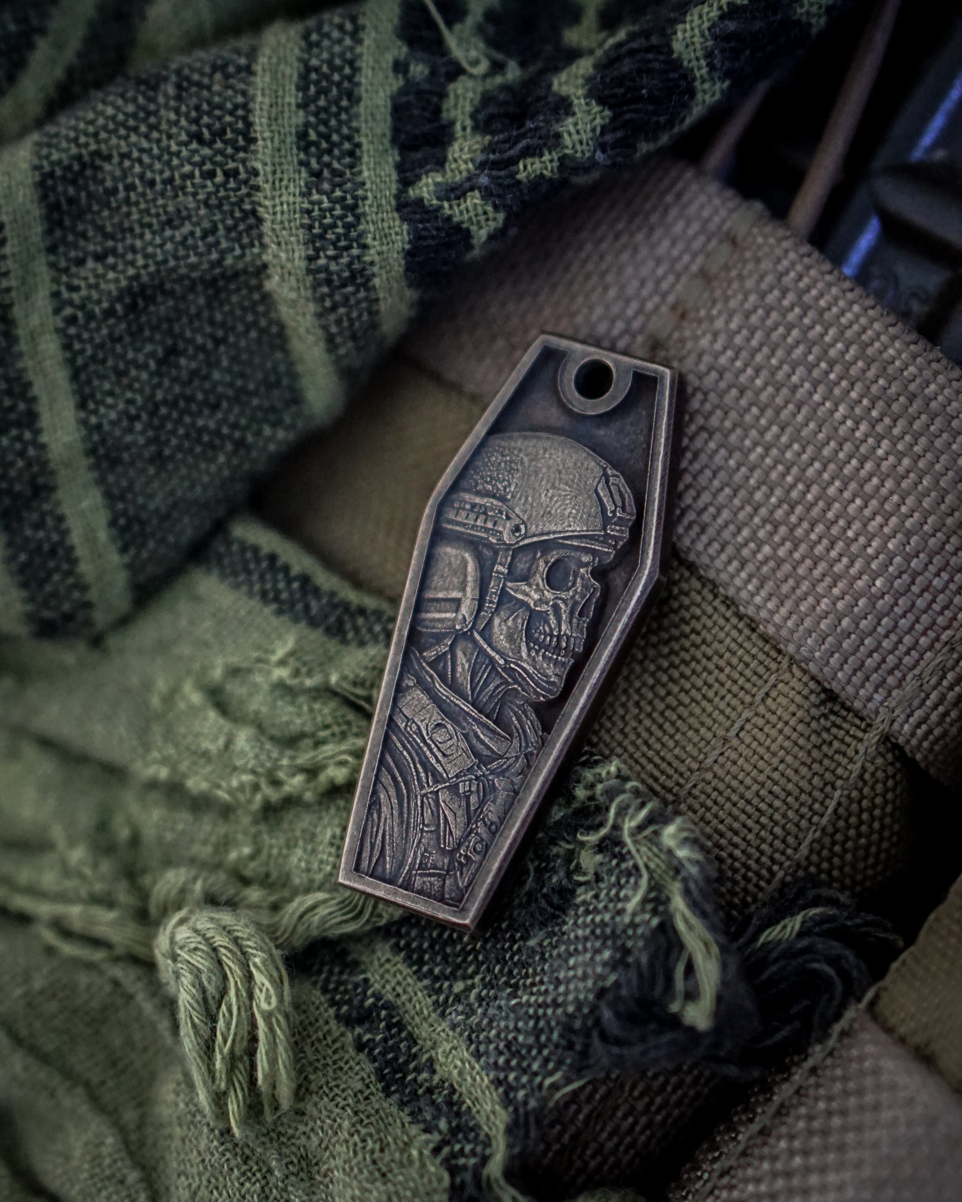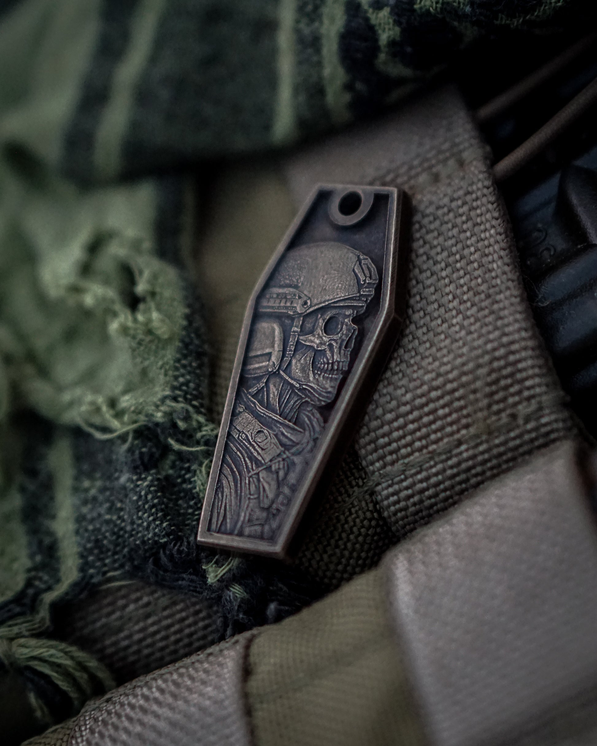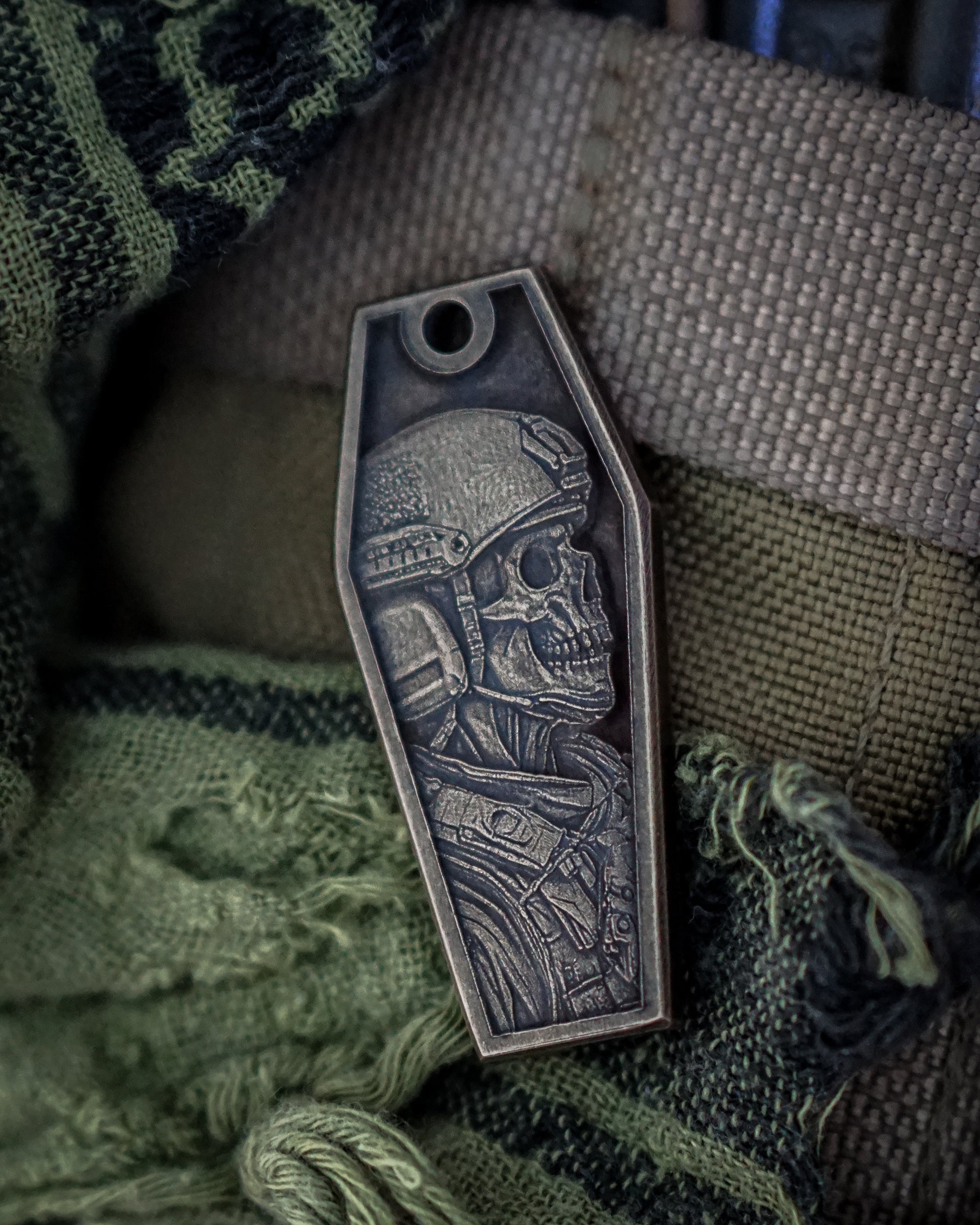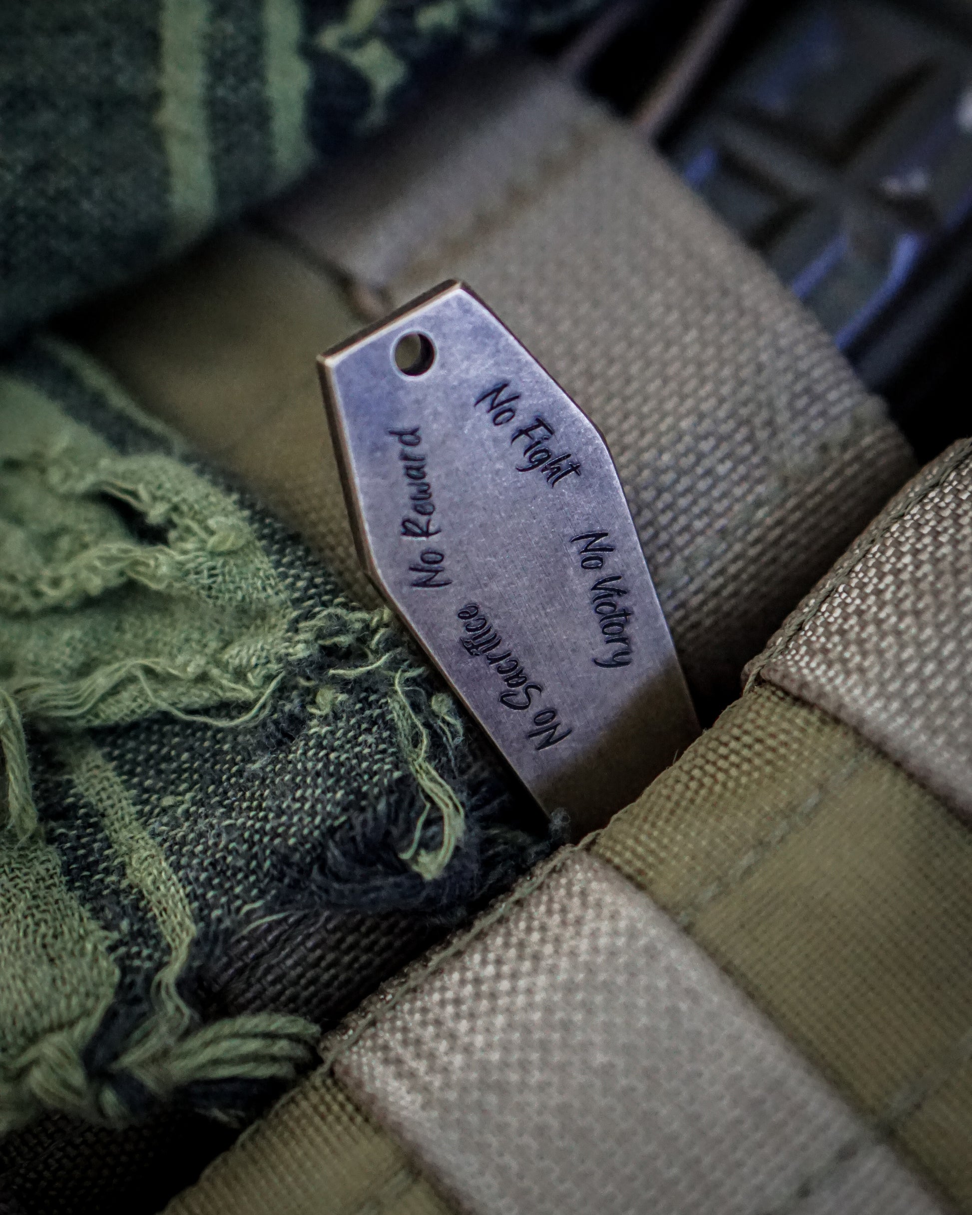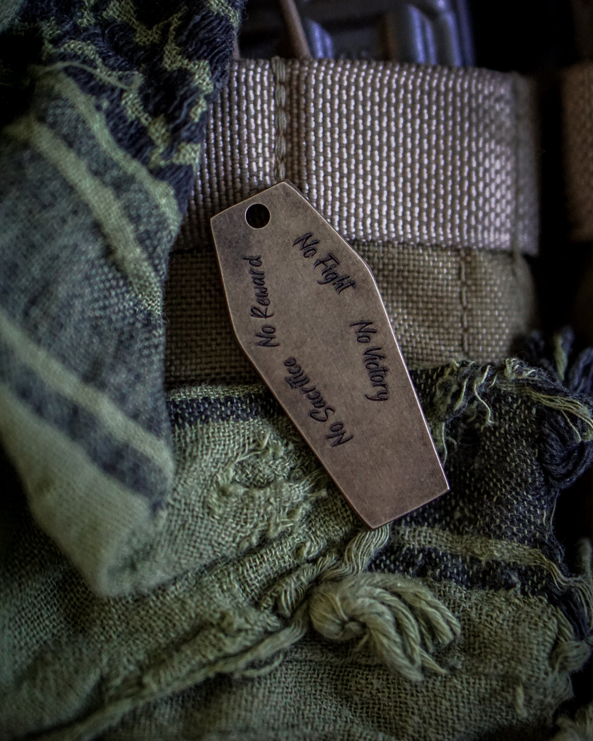 This coffin-shaped brass pendant pulls no punches. One side speaks for itself - bold, uncompromising, and built for battle. The other side delivers hard truths: “No fight, no victory” and “No sacrifice, no reward”