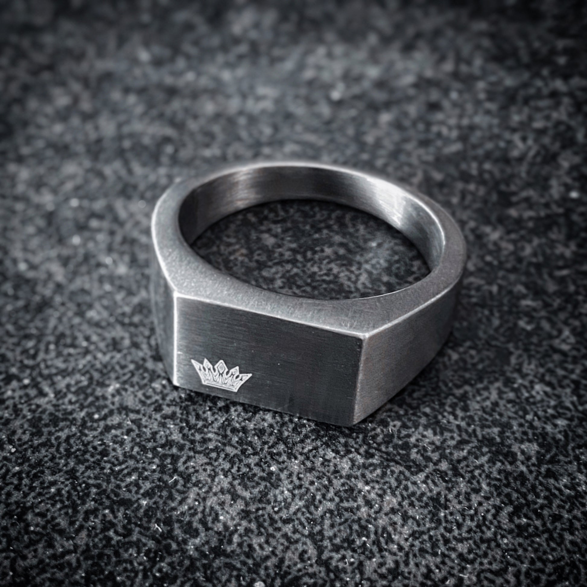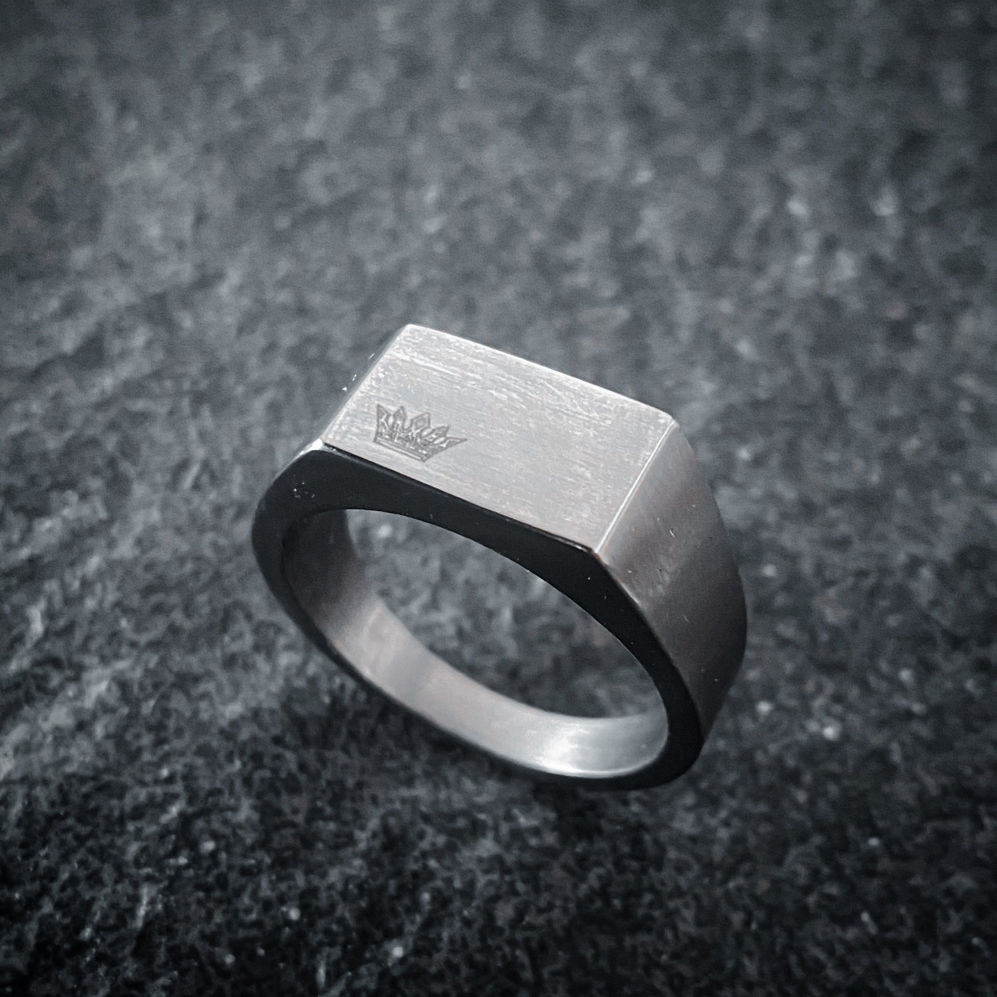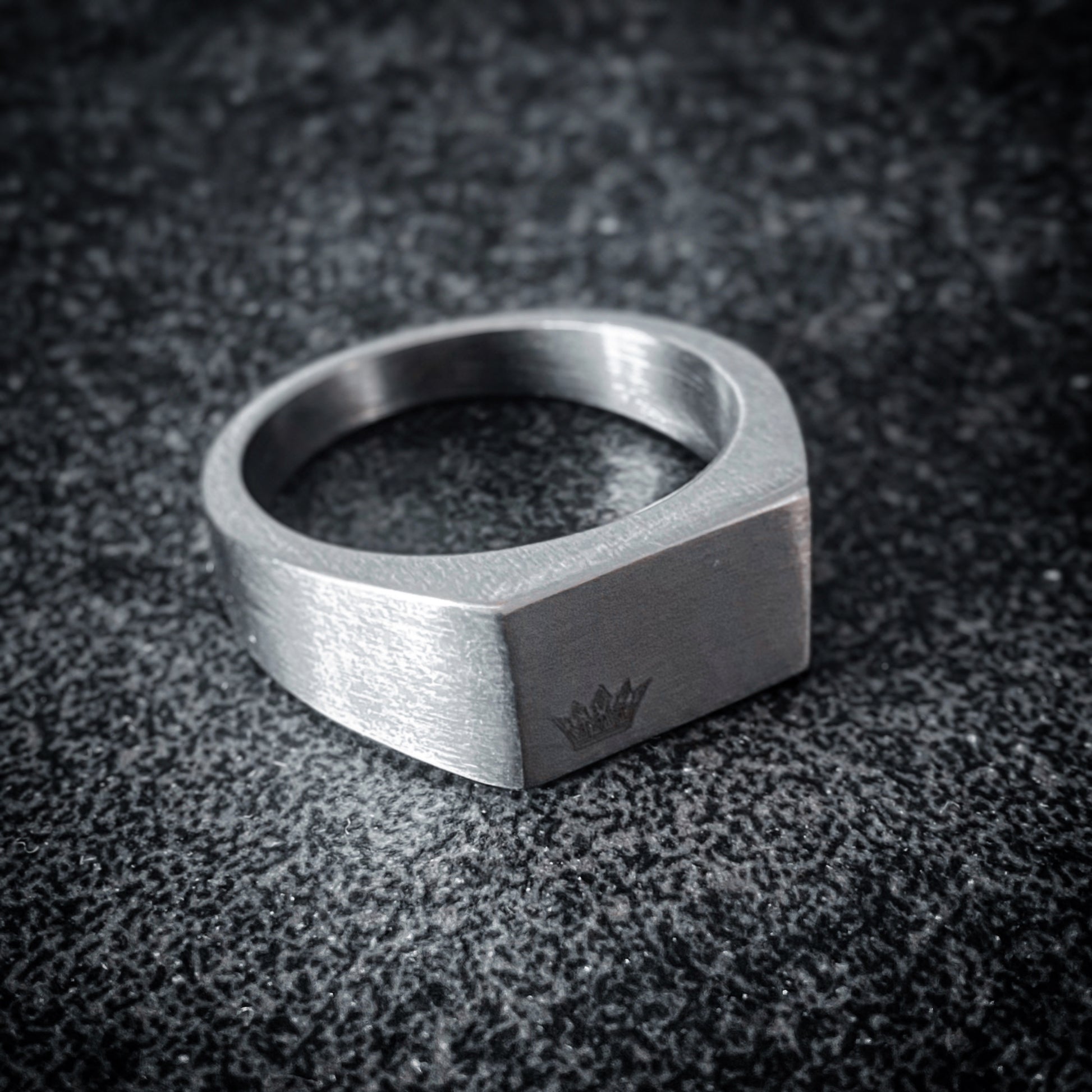The second building block is the design. we chose a timeless signet style ring design with a brushed finish that has presence but is comfortable enough to be worn with ease all day, every day. And finally, it’s all tied together with a subtle, laser-etched crown.