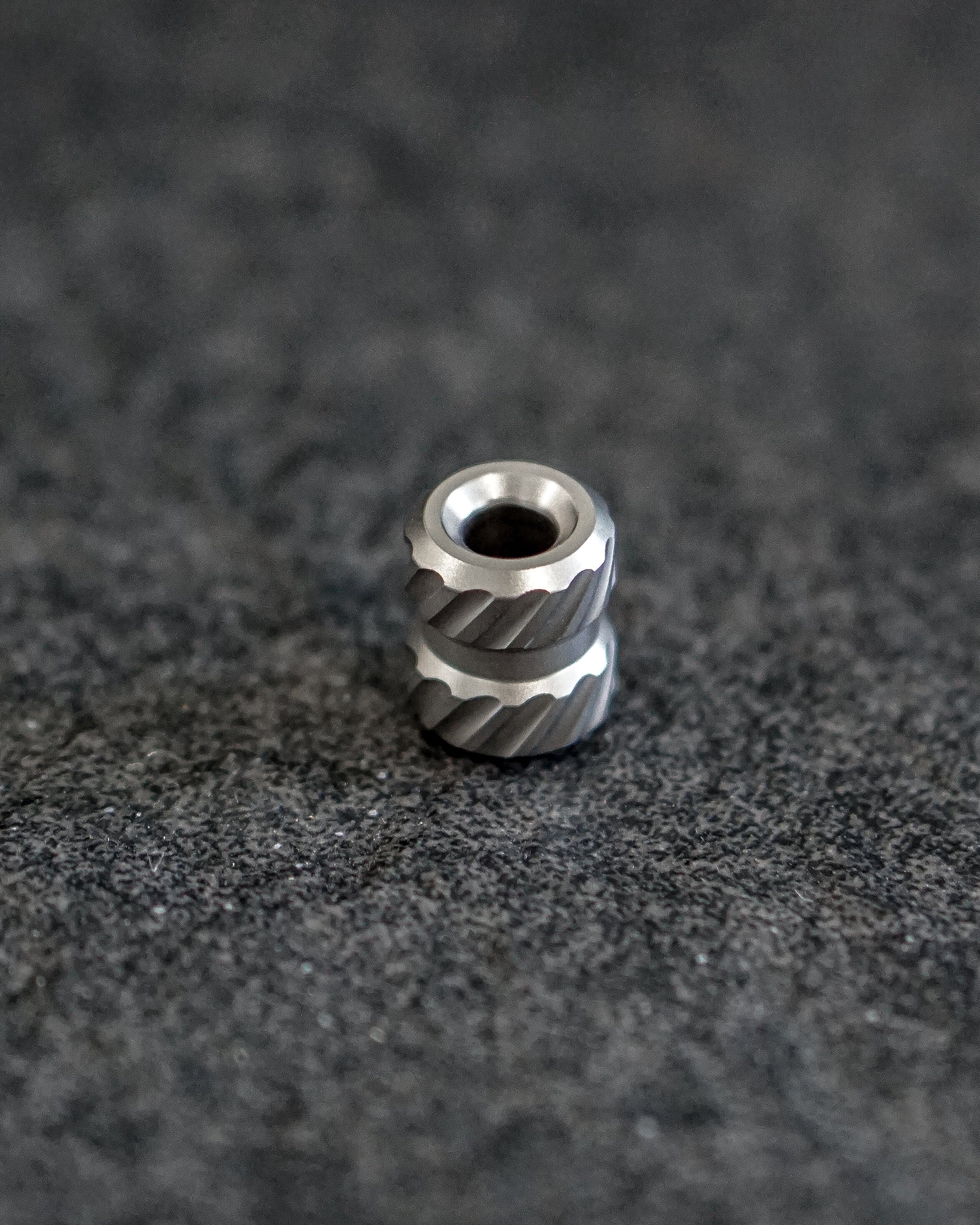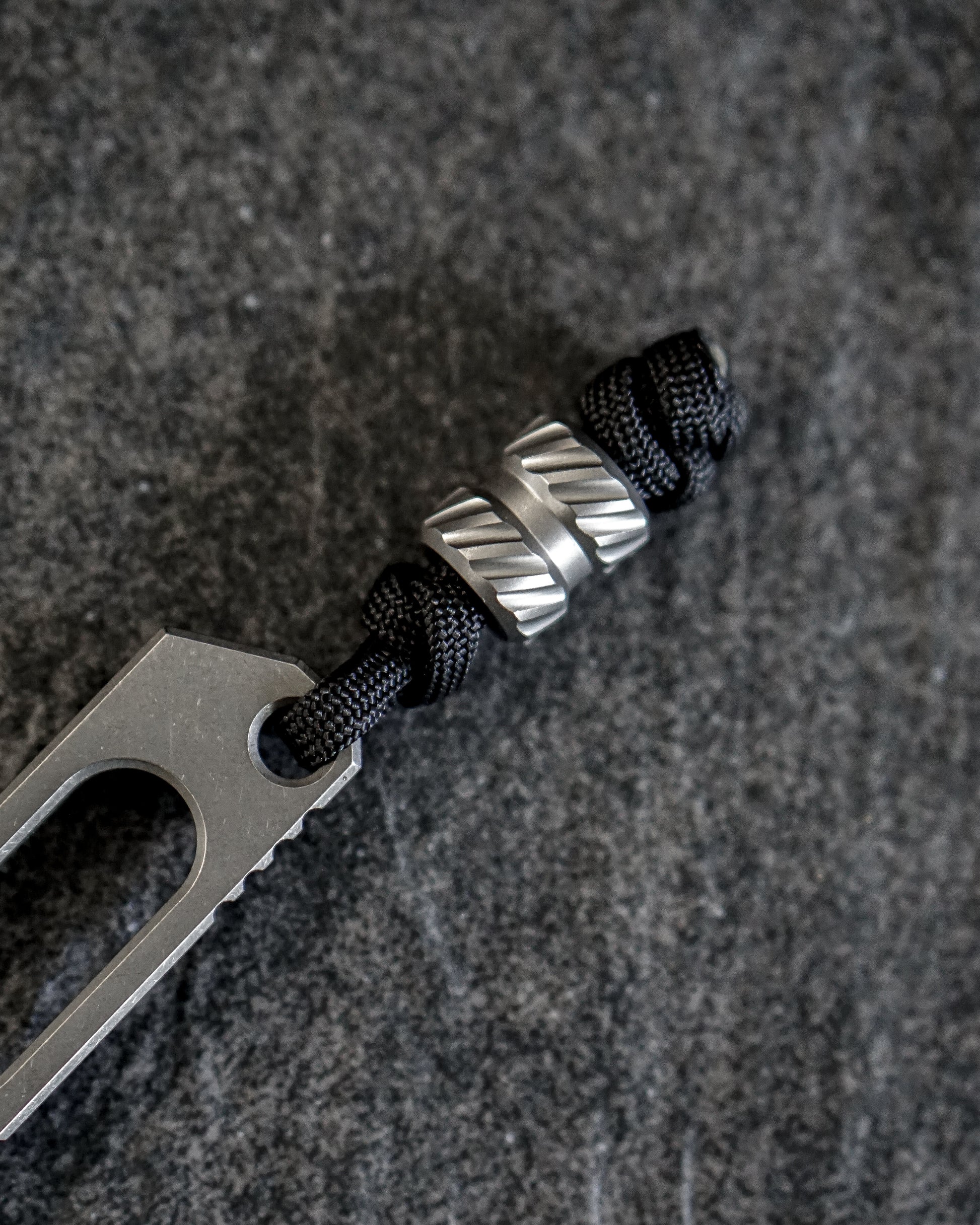 The substantial Titanium Sprocket bead is crafted for enhanced grip when affixed to your preferred EDC item. It effortlessly accommodates two strands of 550 Paracord through its center.